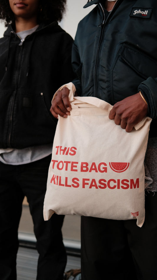 Tote bag "Pastèque Ta Ville Against Fascism" (édition écru et rouge)
